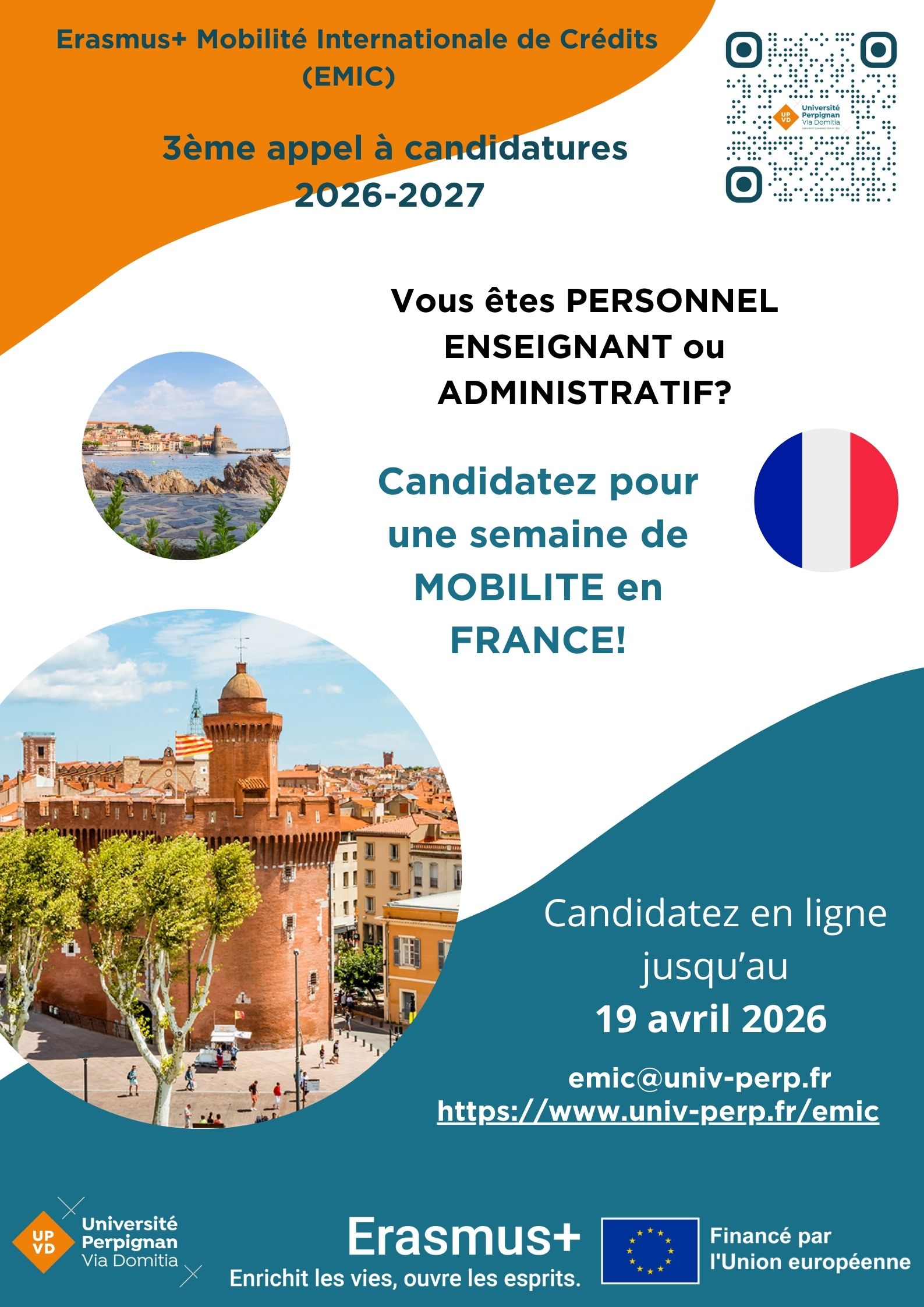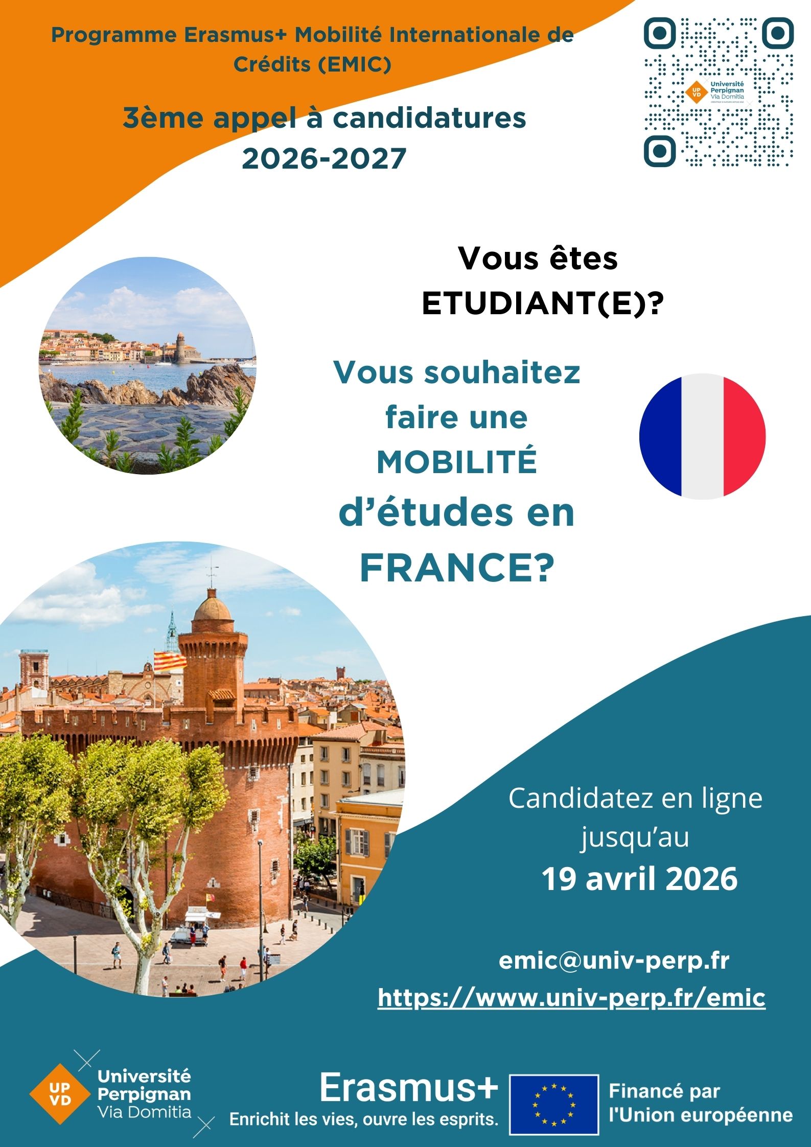 APPEL à candidature 2026-2027 pour Etudiants et Personnel, EMIC Université de Perpignan (FRANCE)